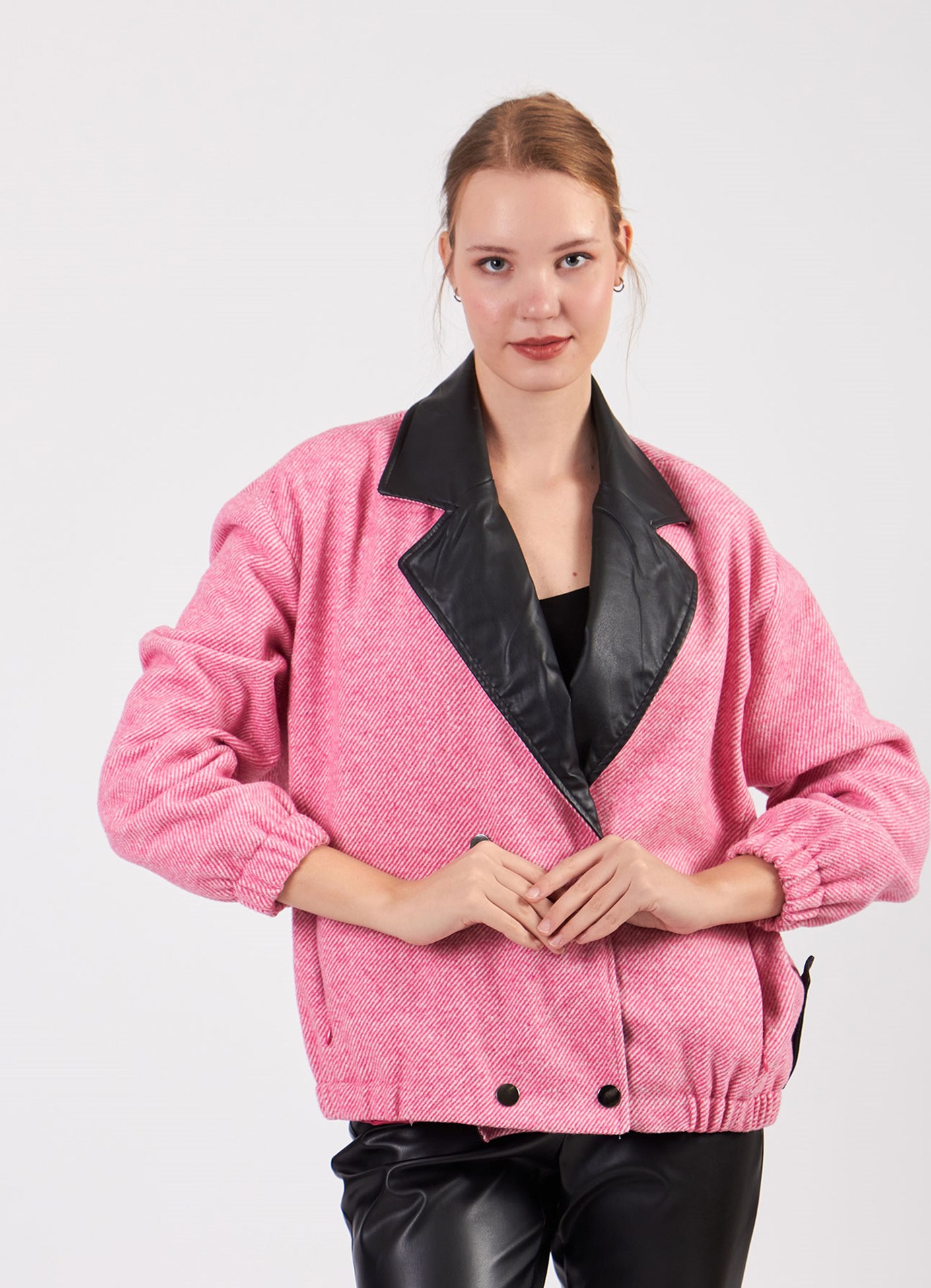 Deri Garnili Kısa Ceket